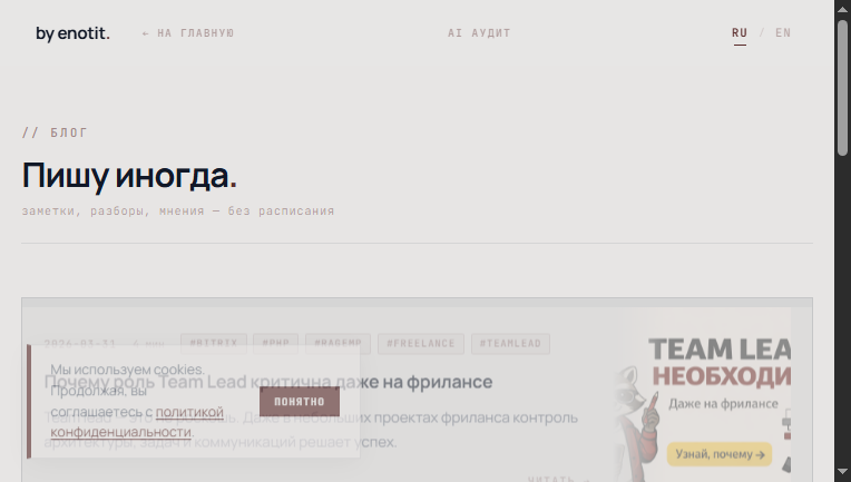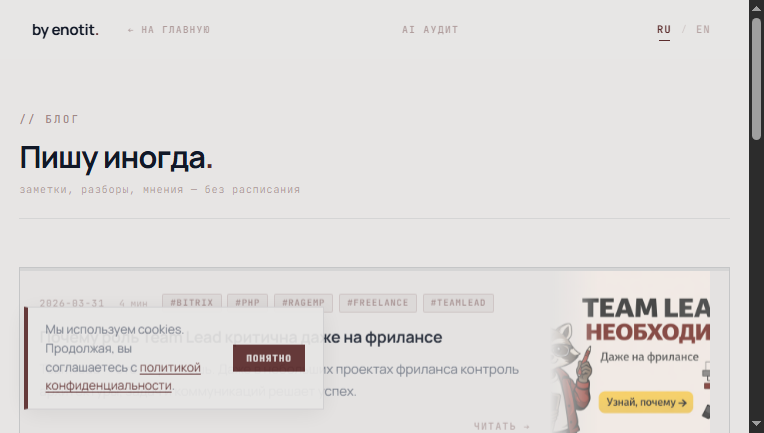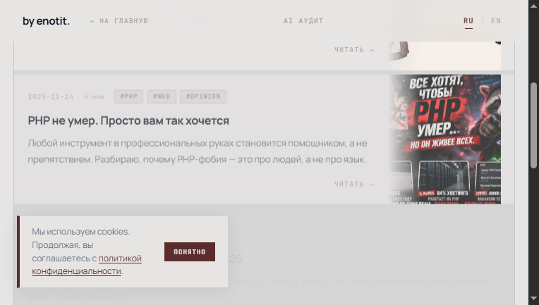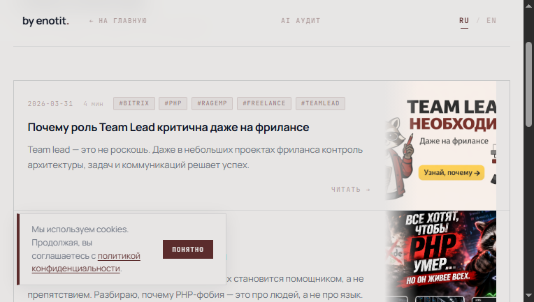 Заметки и статьи о PHP, Bitrix, архитектуре, gamedev и IT-образовании. |